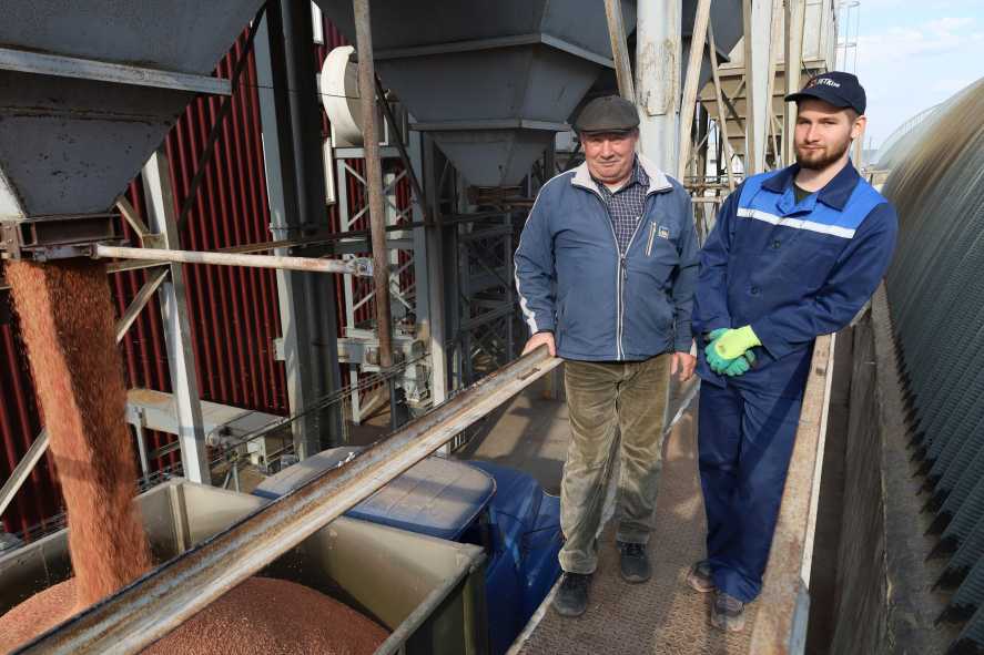 На ХПП предприятия вместе с журналистами аким района посмотрел процесс подготовки семян. На семенной линии «Petkus», мощностью 20 тонн семян в час, проходит процесс очистки, калибровки, сортировки и протравы семян. Из бункеров обработанные семена засыпают в кузов автотранспорта и транспортируют в склады.