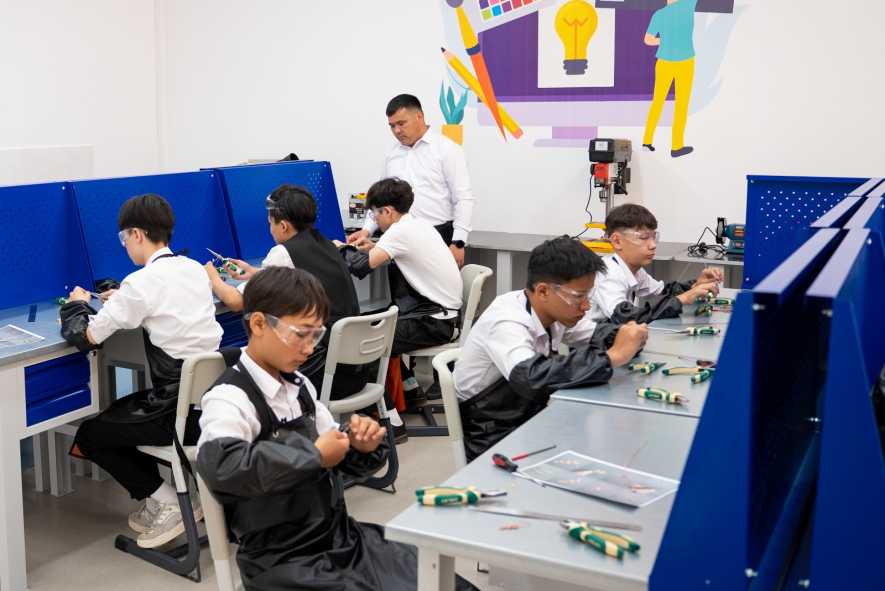 «Мектепте робототехника кабинеттері, цифрлық зертханалар мен практикалық сабақтарға арналған шеберханалар жабдықталған. Тіпті бастауыш сыныптарға да заманауи құралдар мен жабдықталған сыныптан тыс аймақтар қарастырылған», – деді ол.