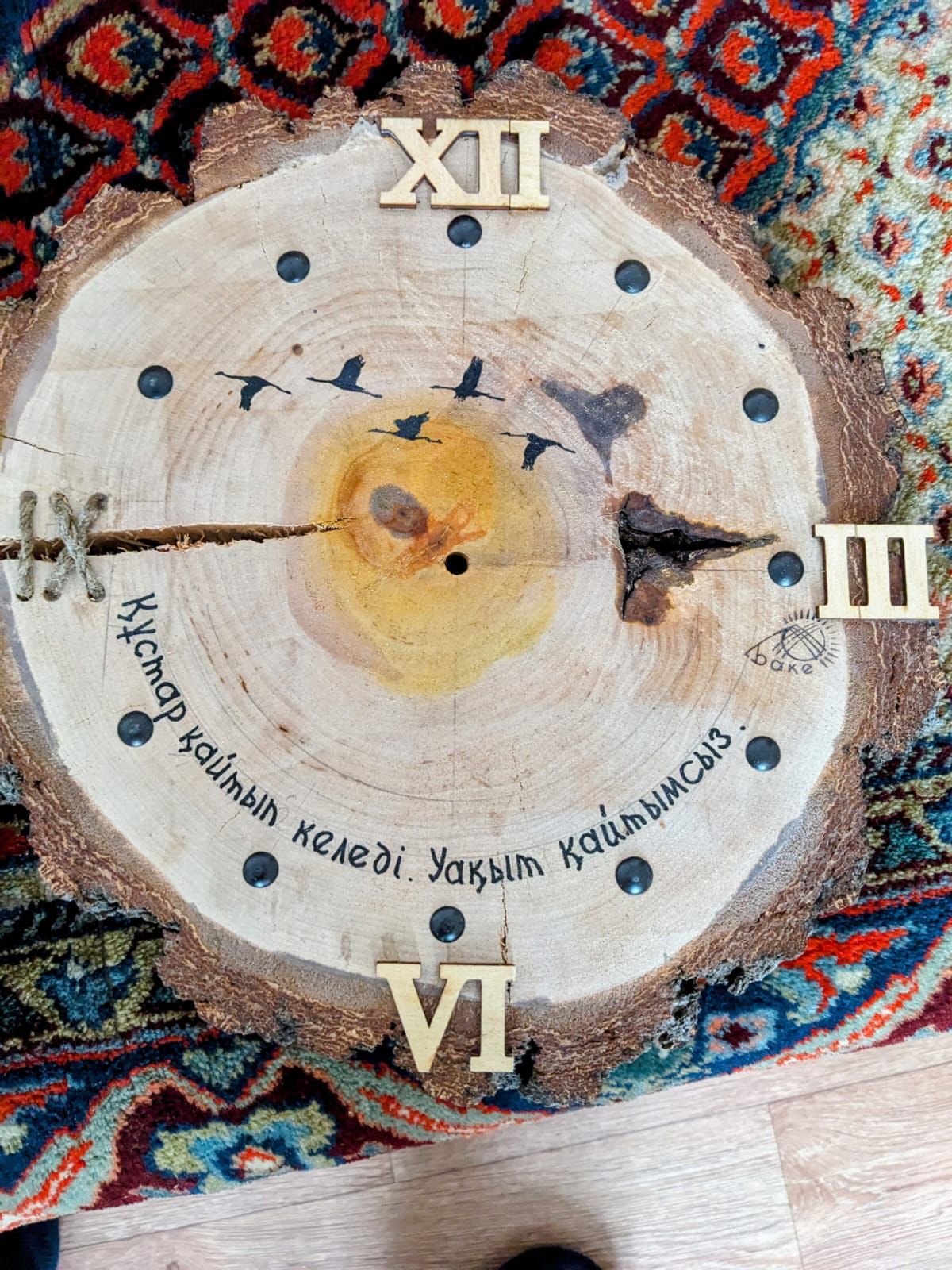 Материал Батырбек Калимов берёт у лесников или дровенников. Иногда в работу идут и корявые, немного гнилые деревья. По его словам, для часов они подходят идеально. Можно делать часы разной формы, тут уже на свою фантазию.