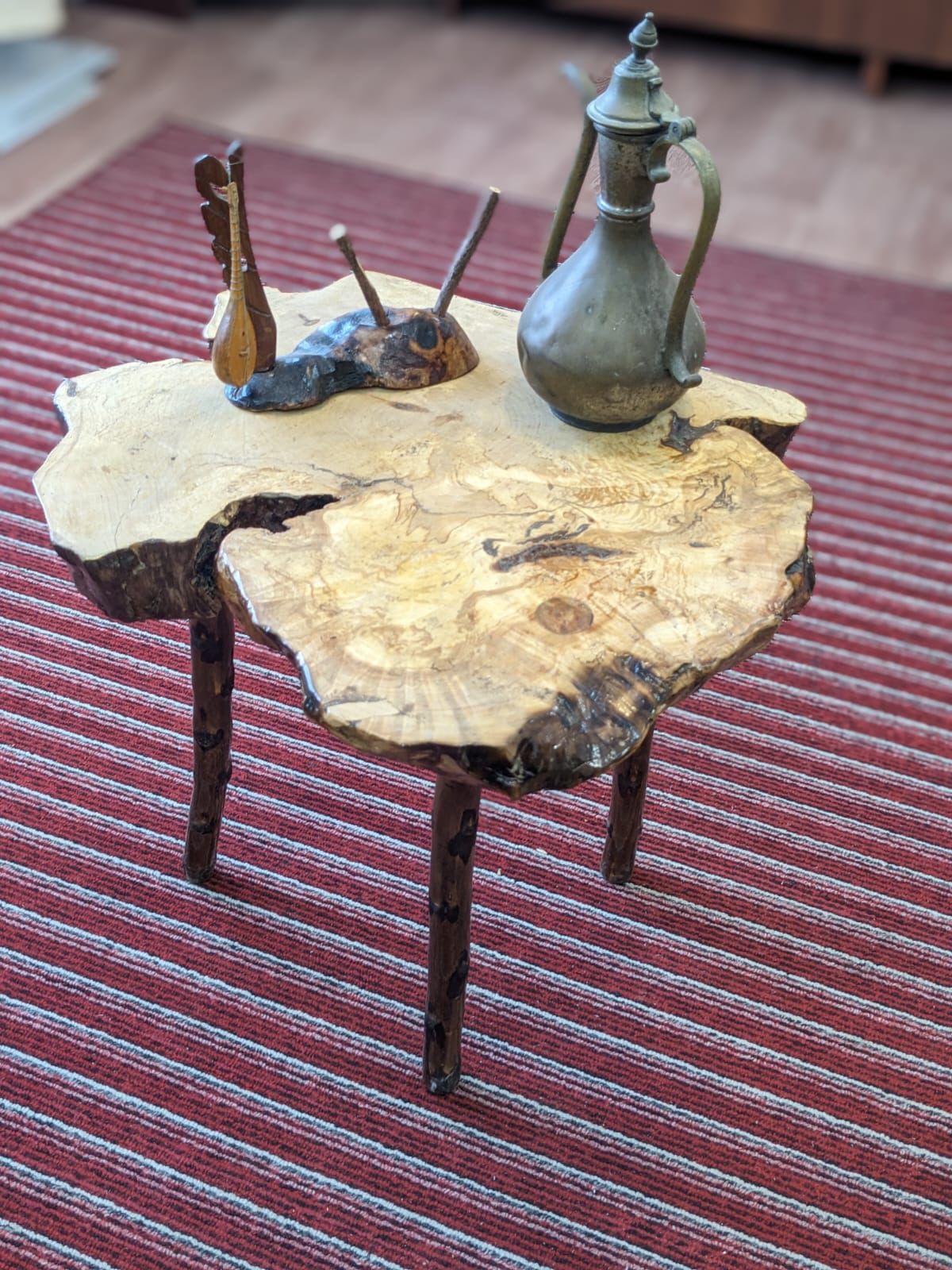 Батырбек Калимов пришёл к работе с деревом уже на пенсии — без художественного образования, ремесленной школы, но с большим жизненным опытом инженера-строителя и глубоким уважением к национальной культуре. Сегодня он изготавливает агаш табак (астау), посуду, часы, столы и другие изделия из дерева, в которых соединяются традиция, технология и характер самого мастера.