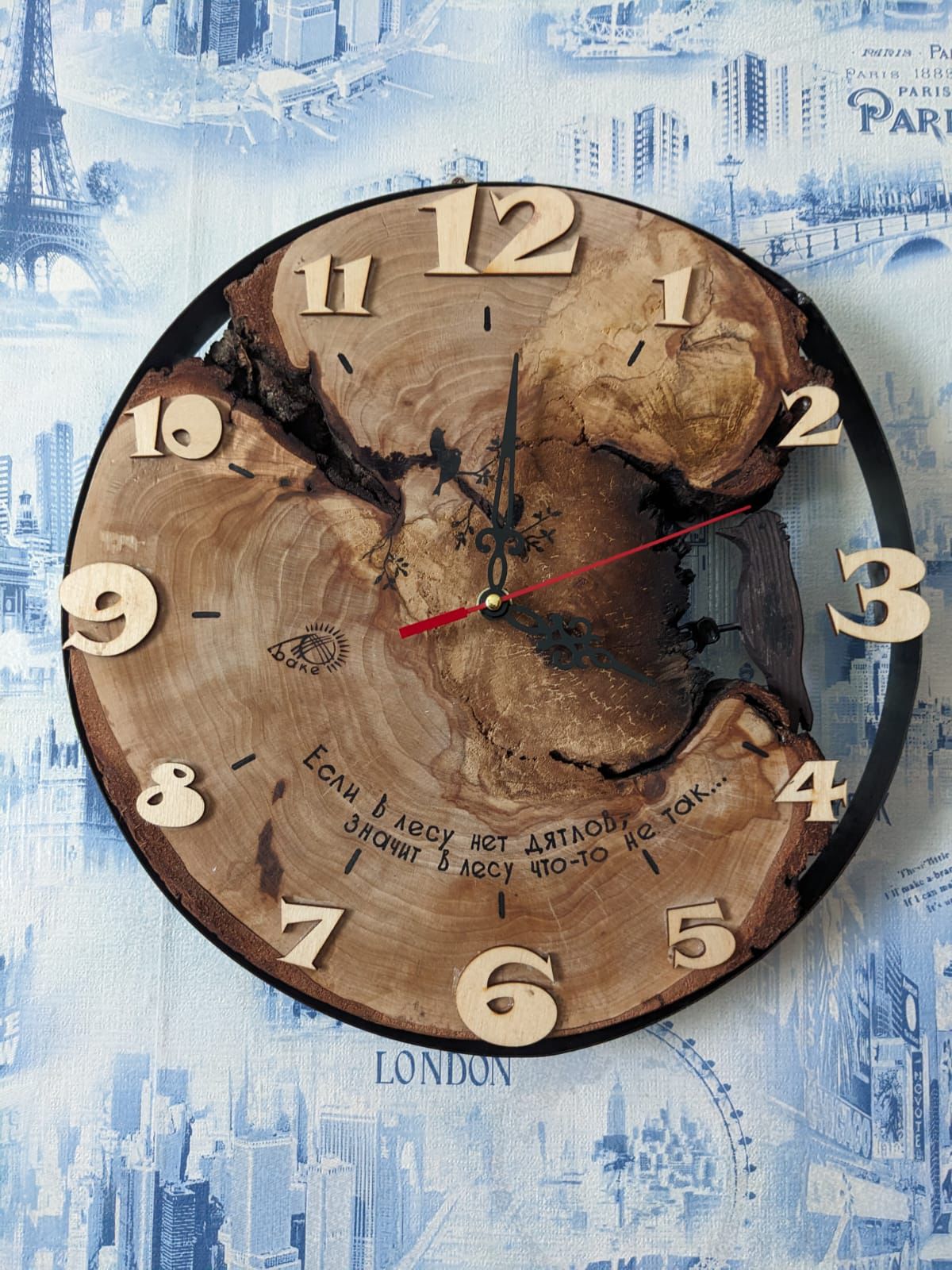 – За всё время я заготовил, наверное, кубов 6–7 леса. А использовал меньше куба. В процессе сушки смотришь — тут сучок, там трещина. Работа муторная, но приятная, – считает Батырбек Калимов. – Иногда я выжигаю изделия, у меня ещё советский выжигатель. Но чаще использую специальные перманентные маркеры — они не выцветают, не боятся ультрафиолета. Часы можно покрывать любым лаком для дерева.