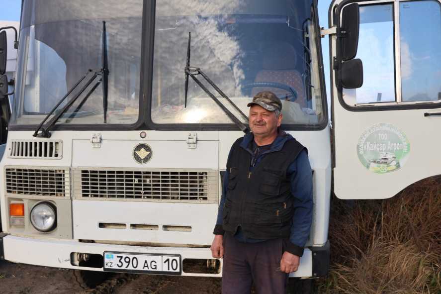 Сегодня он совмещает обязанности инженера и инспектора по охране труда. С утра он за рулем – отвозит людей на автобусе в поле, вечером привозит обратно. Днем – обеспечивает техподдержку, доставляет запчасти, помогает на ремонте, контролирует технику безопасности.