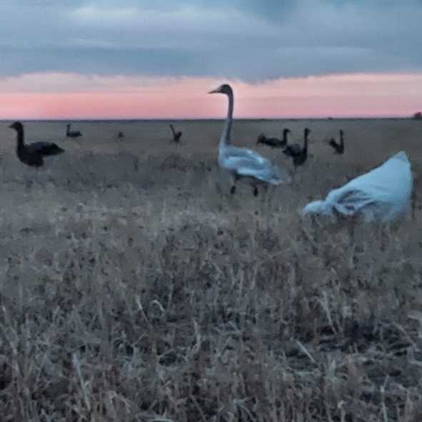 А сейчас, пока ещё осенняя охота не закрыта, охотники загодя присматривают себе места, копают траншеи, и ранним утром лежат в них в ожидании удачи. Правда, рядом прохаживаются гордые красавцы лебеди, которые ещё не все улетели в тёплые края и никого не боятся: ни человека, ни птиц-сородичей. Они же непуганные, охота на них заперещена. Спокойствию этих птиц можно только позавидовать, как и терпению да выдержке любителей провести время с ружьём и фотоаппаратом, который скрадывает время ожидания удачи получить трофей.