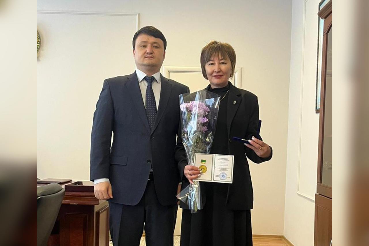 За преданность делу и в честь 20-летия НАО «Правительство для граждан» руководитель Камыстинского районного филиала была награждена юбилейной медалью.