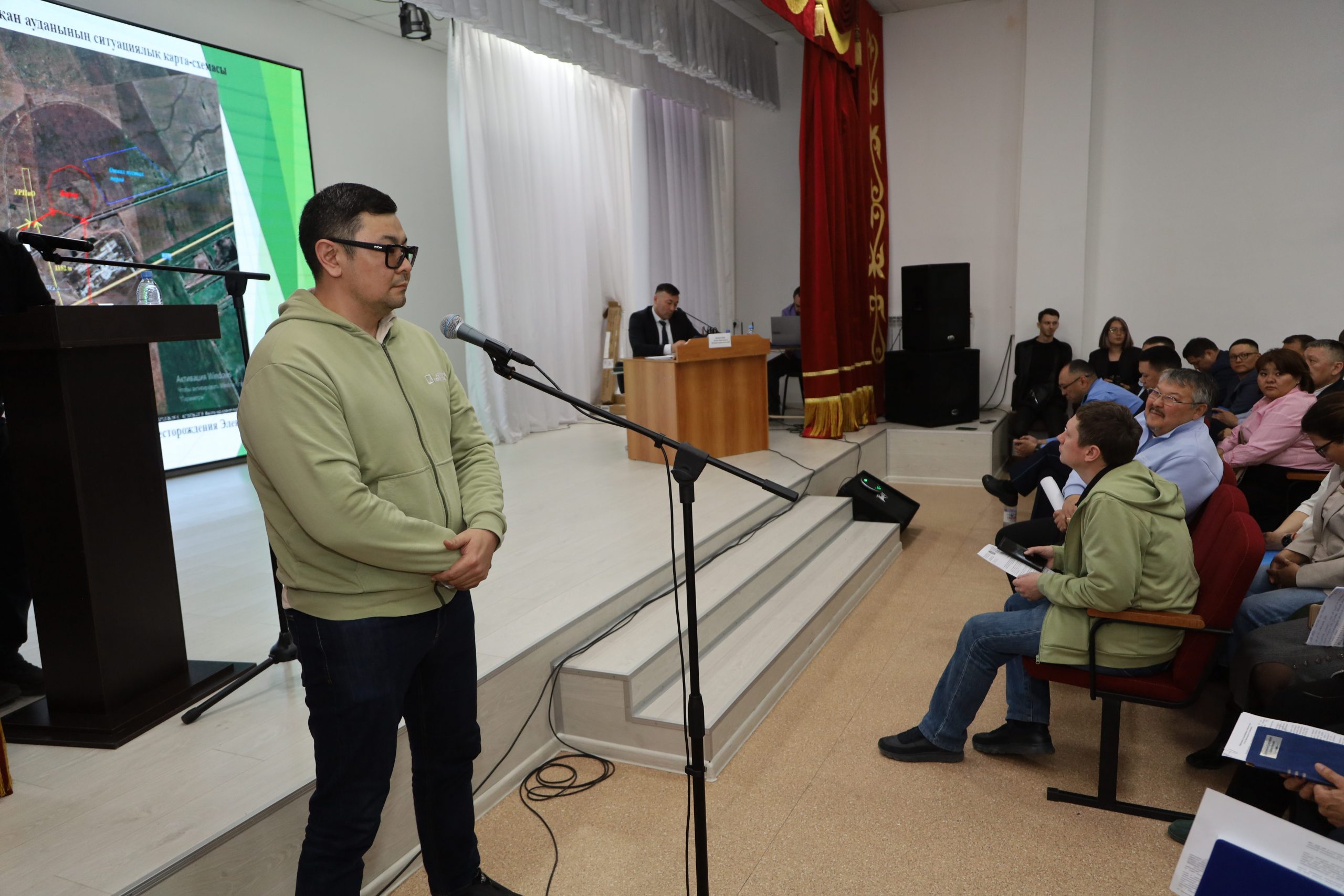 Председателем слушаний был аким района Аслан Жаныспаев.