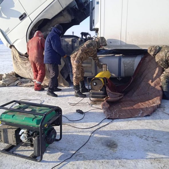 Аналогичная помощь была оказана на автодороге республиканского значения Карабутак – Костанай вблизи села Бестобе. Спасатели отогрели фуру при помощи тепловой пушки, после чего движение было восстановлено.
