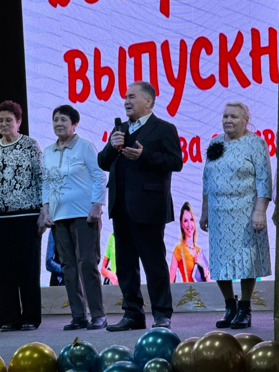 Приятно отметить, что на нашем вечере присутствовали педагоги – ветераны педагогического труда Есимтаев Махамбет Кайрбекович, Тутенбаева Нагима Серикбаевна, Щербакова Татьяна Николаевна, Сологуб Любовь Васильевна, Есимтаева Жулдузай Габдуловна, Тимошенко Юрий Алексеевич, которые хоть и находятся на заслуженном отдыхе, но душой и сердцем всегда с родной школой.