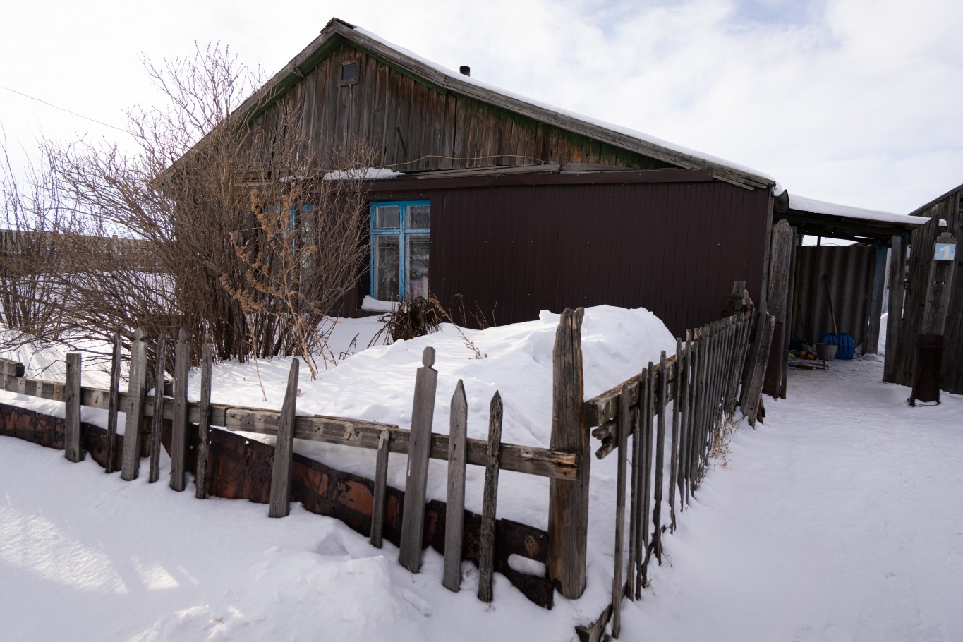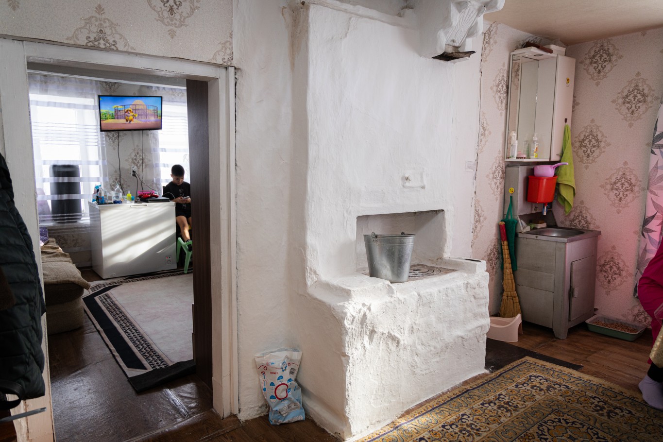 Дом двухкомнатный – прихожая совмещена с кухней и основная комната, в которой и проходит вся жизнь многодетной семьи.