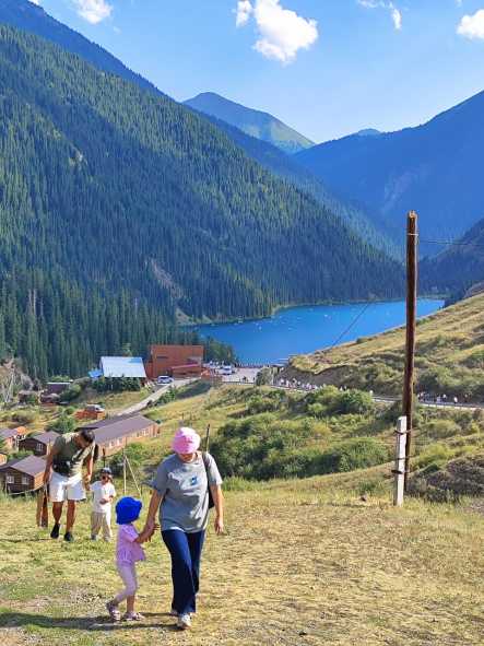 Келесі біздің барған жеріміз – Көлсай көлі. Бұл көлдер “Көлсай көлдері” деп аталатын ұлттық паркіне жатады, мемлекеттің қорғауында. Көл маңайына жету үшін ағаш баспалдақтармен екі шақырым жер өту керек. Бұл көлде туристер шомылып, катамарандармен серуендеп оралады.